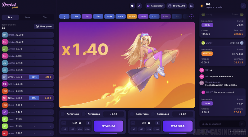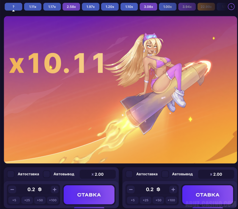 Вы сами выбираете сумму ставки, устанавливаете авто-вывод (например, при x2 или x5) и решаете, когда забрать выигрыш.