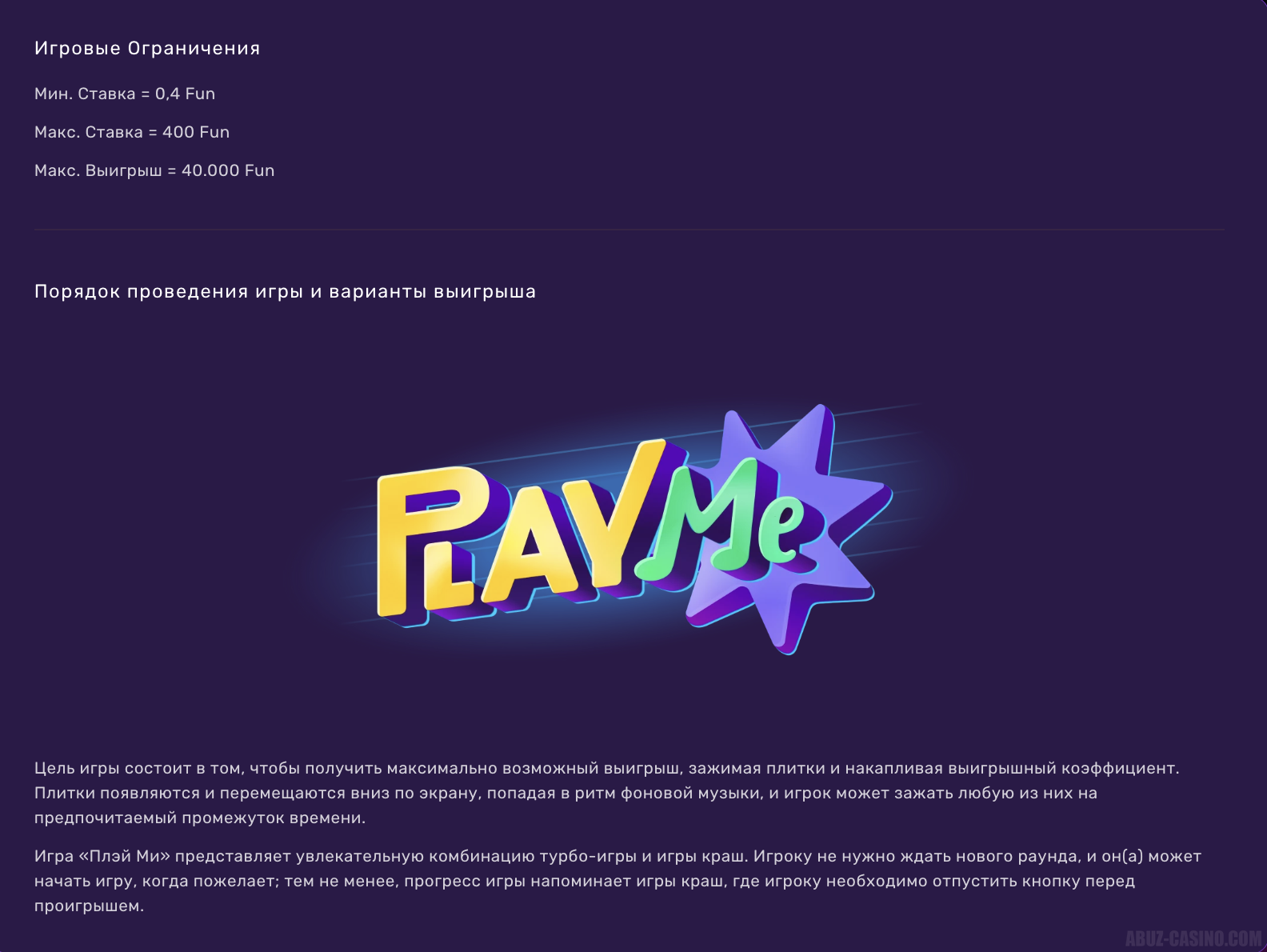 Если подходить к игре дисциплинированно, применять стратегии и контролировать ставки — Play Me может стать одной из самых увлекательных игр в категории turbo-crash.